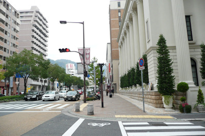 目の前のフラワーロードを山側(北北東)へ直進します。徒歩約五分。