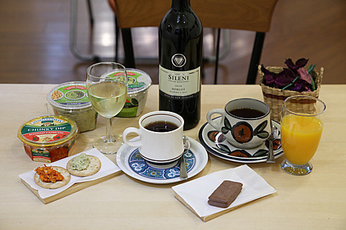 コーヒー、紅茶、オレンジジュースを飲まれた方には、TimTamを。ワインの方には、NZから持ち帰ったクラッカーとディップ。これも好評でした。